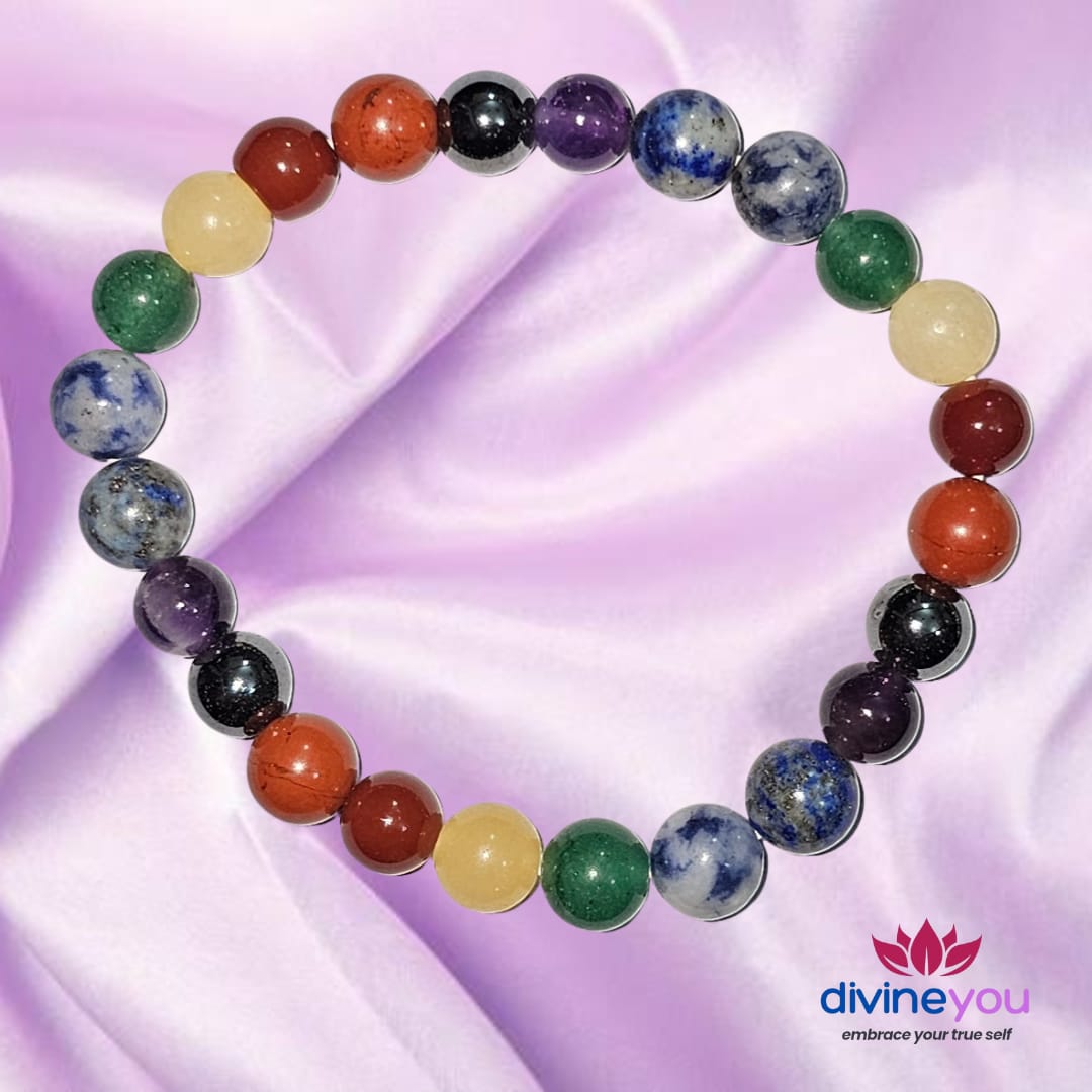 A Seven Chakra bracelet is designed to balance and align the body's energy centers, promoting overall well-being. Each of the seven stones corresponds to a specific chakra, helping to clear blockages and enhance energy flow. Benefits include improved emotional balance, reduced stress, and increased focus. It is also believed to enhance spiritual growth, boost confidence, and encourage positivity. Wearing this bracelet can promote harmony between mind, body, and spirit, leading to a more peaceful and energized life.